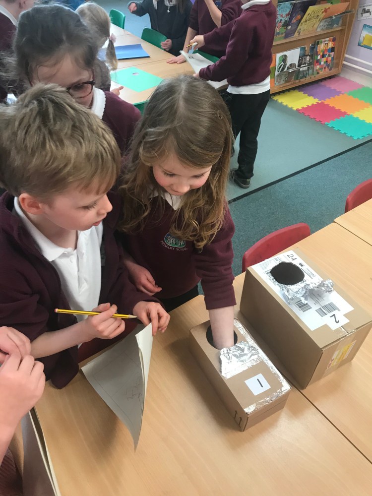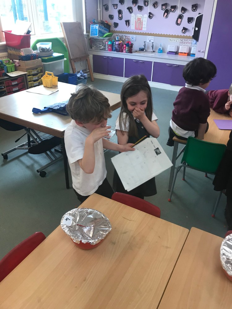 We had lots of fun on Monday afternoon carrying out some touch, smell and sight tests! The children worked in pairs or trios and recorded what they thought each item was.