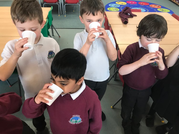 On Tuesday we carried out a taste test. The children were asked to guess what each drink was by using their sight, smell and then taste! They were very surprised when the ‘orange juice’ didn’t smell quite like they thought it would and managed to identify it as water!