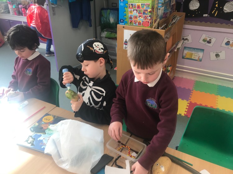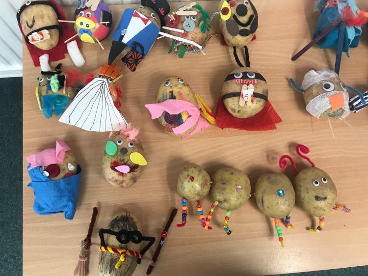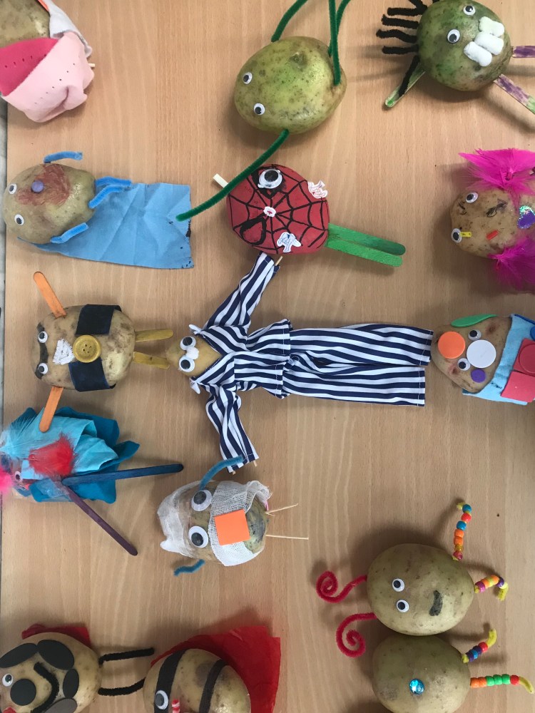 We then decorated our potatoes! The children showed wonderful creativity for this task and I saw lots of determination to create their characters! Sticking things to a potato is not an easy task!