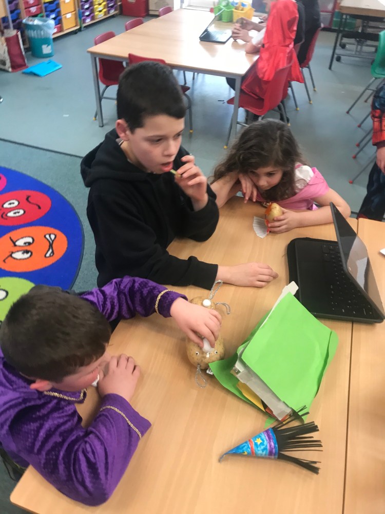 In the afternoon we used our potato characters to create animations with our buddies. This was lots of fun!