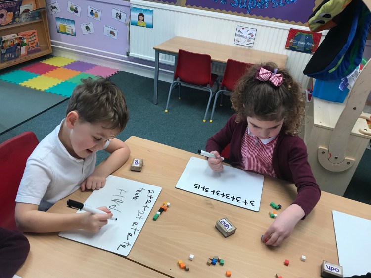 This week we continued to look at multiplication and making equal sets. The children really impressed me when having a go at repeated addition.