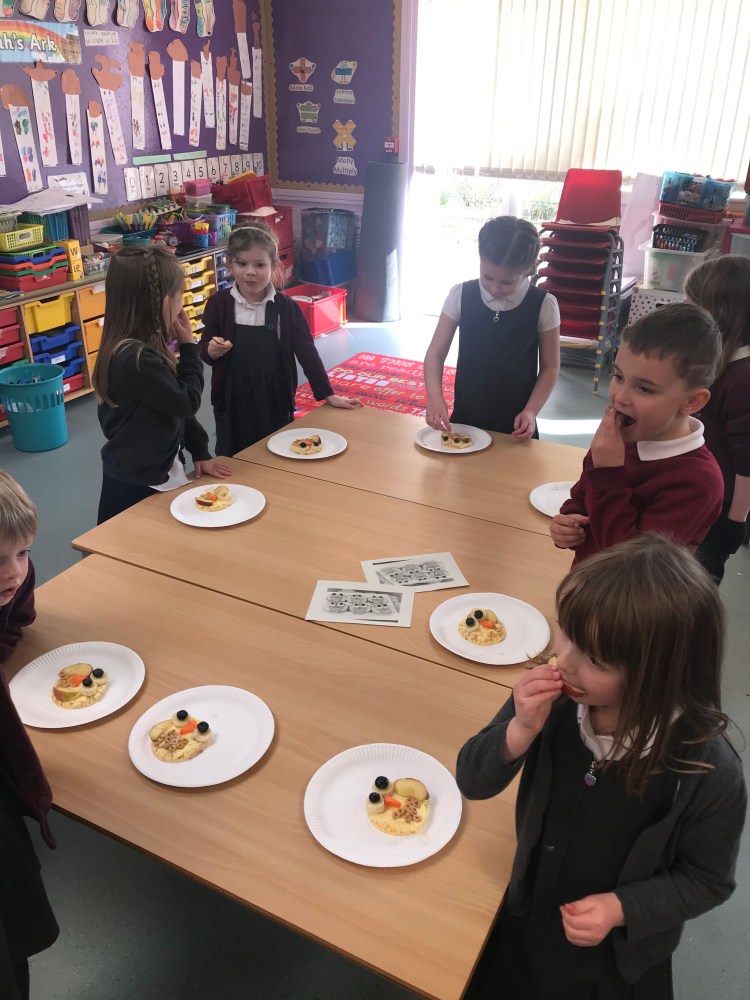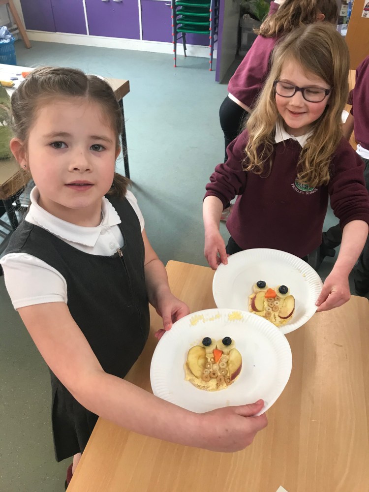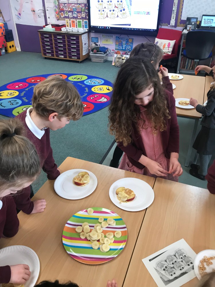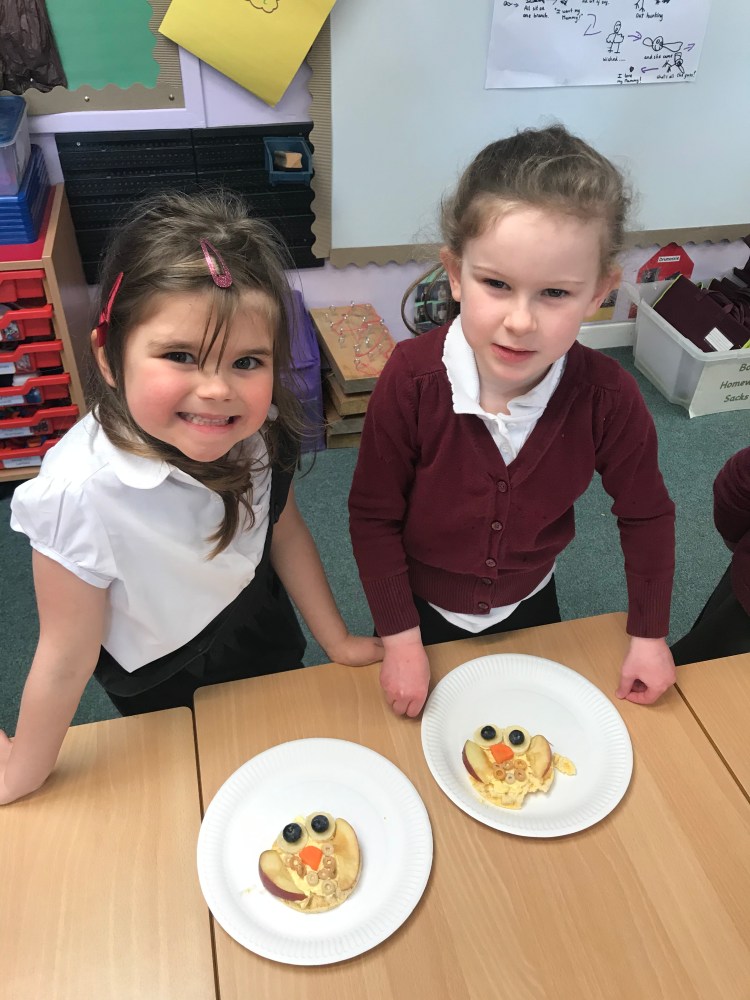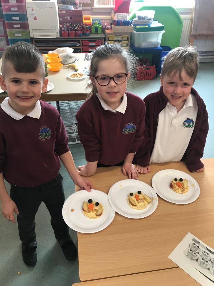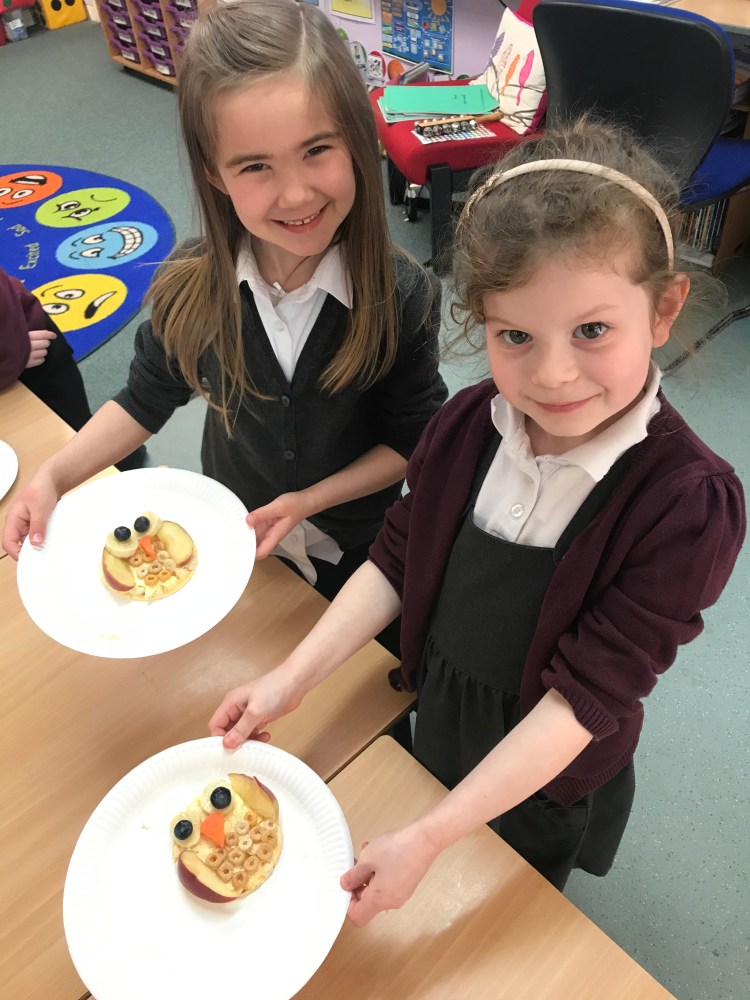 We also had great fun making our own rice cake ‘owl babies’, and then enjoyed eating them of course! Contributing to our 5 a day! 😊🍌🍎🥕