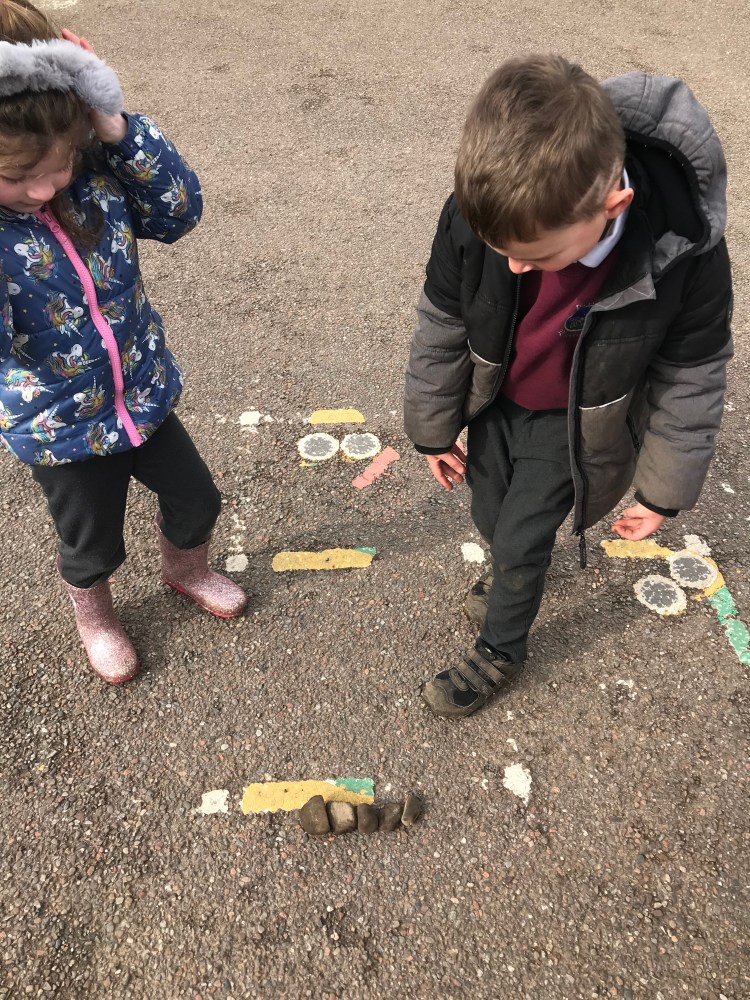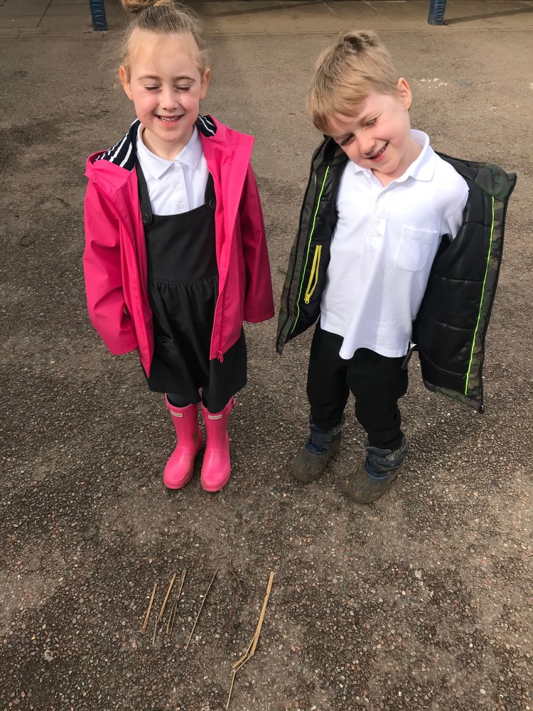 We then went outside and gathered 5 sticks or stones and put them in order from smallest to biggest/shortest to longest.